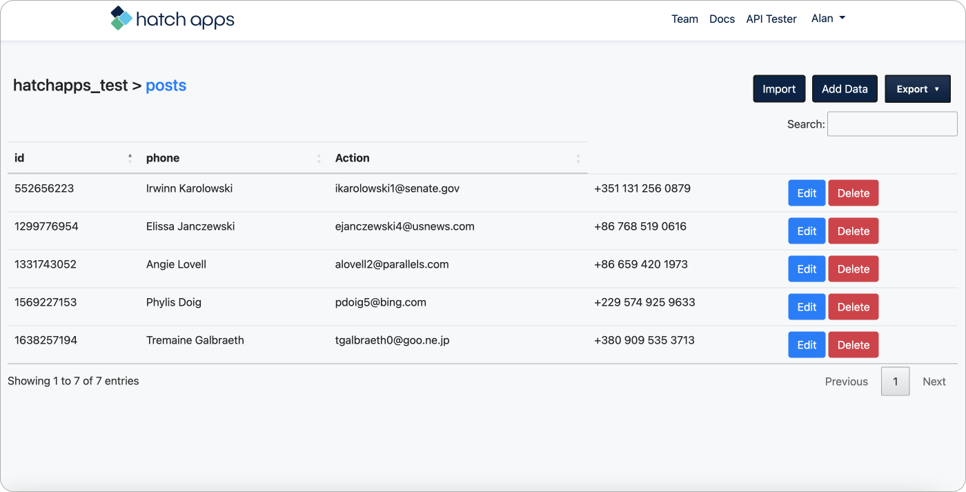 * View data: View your data in a spreadsheet-like interface with dynamic columns and rows based on how you defined the API.&#x20;