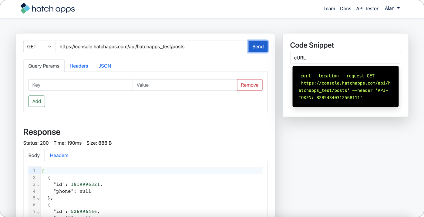 That's it! You have successfully built and deployed your first API with Hatch Apps API Builder and created your first object.